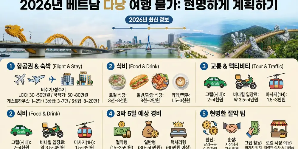 동남아시아의 진주 베트남, 그중에서도 다낭은 아름다운 해변과 활기찬 분위기로 사랑받는 여행지입니다. 여행 준비의 첫걸음은 바로 예산 계획이죠. 2026년 현재 베트남 물가는 어느 정도일까요? 합리적인 다낭 여행을 위한 항목별 필수 경비 정보를 공개합니다.